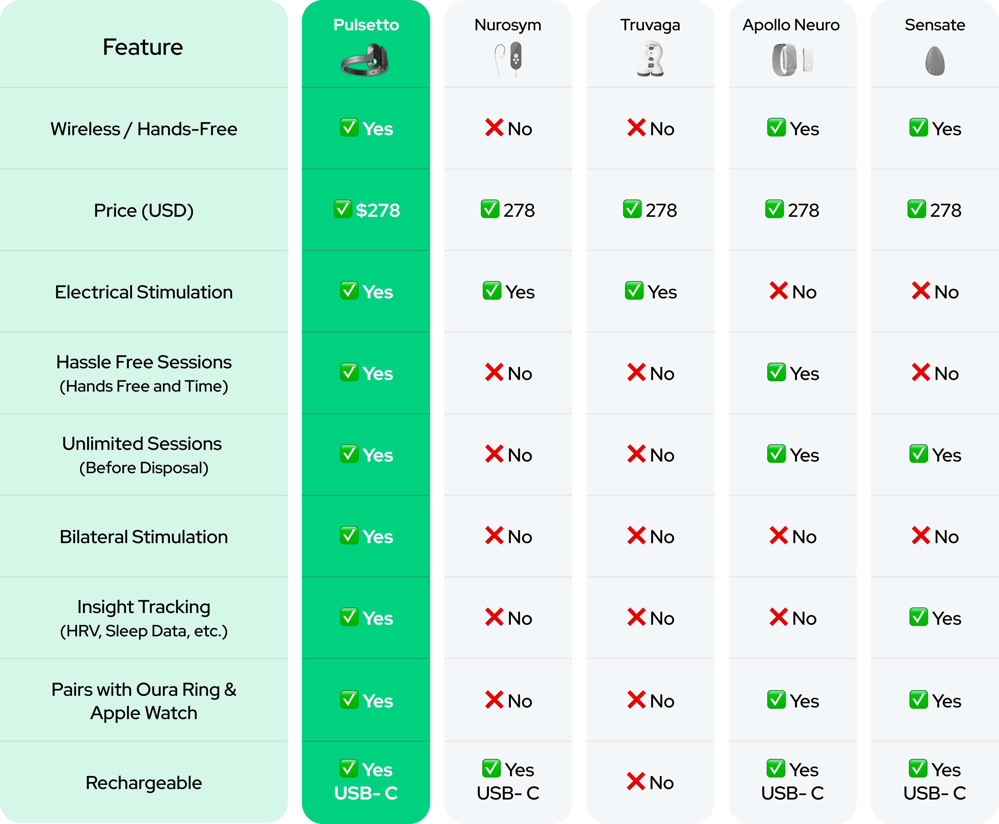 See how Pulsetto wins against other devices