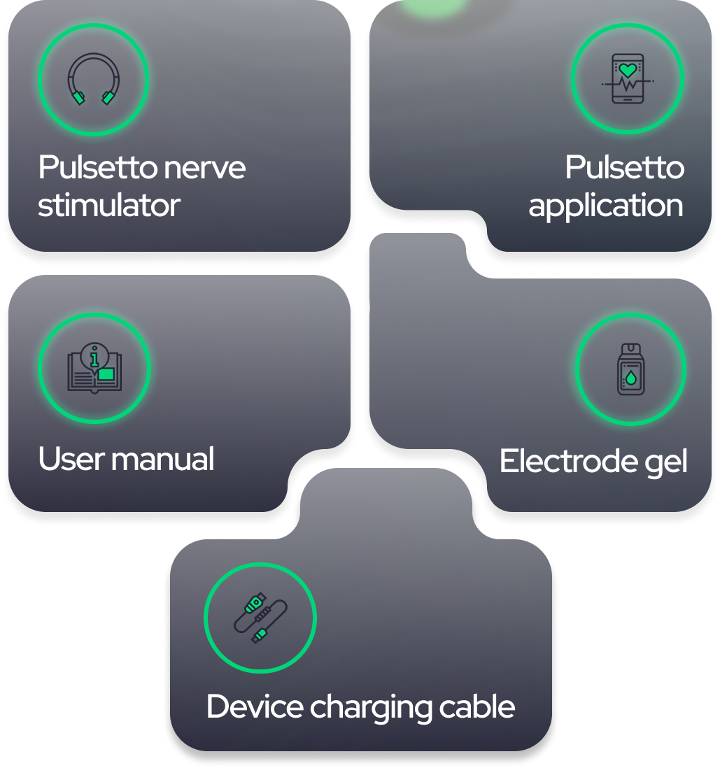 After you place your order, we will send you our Pulsetto hardware device and user manual.