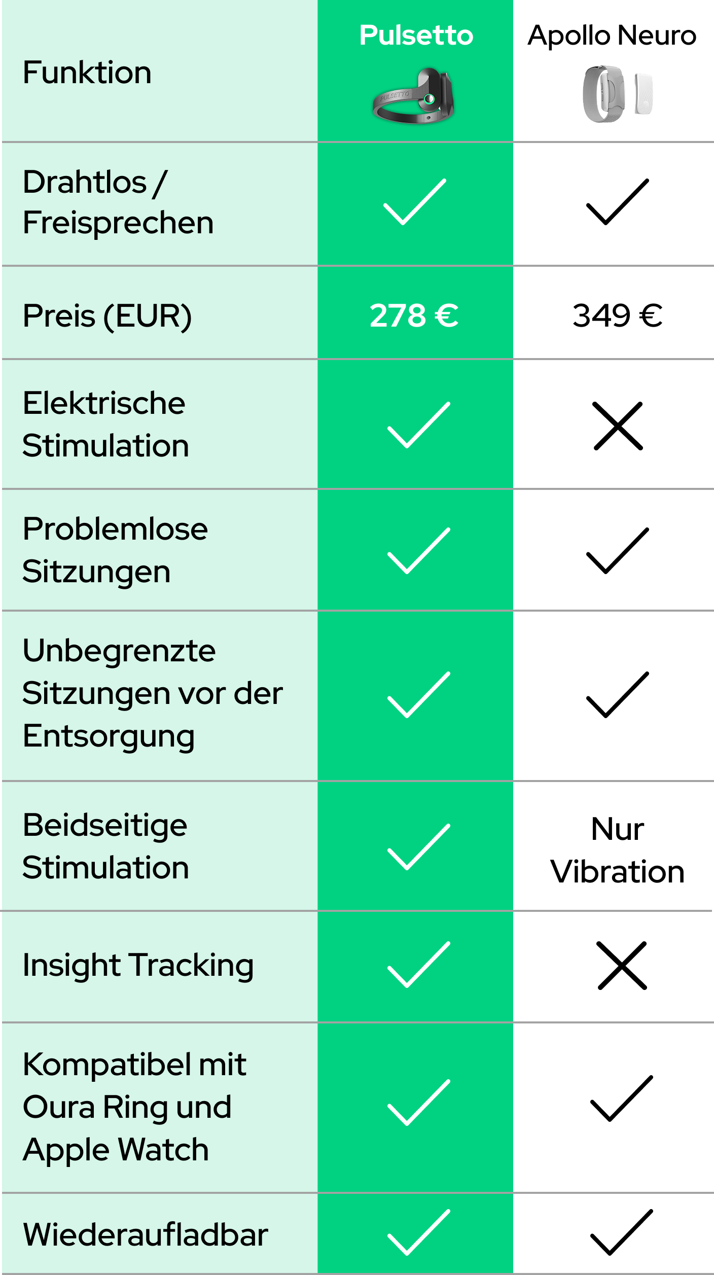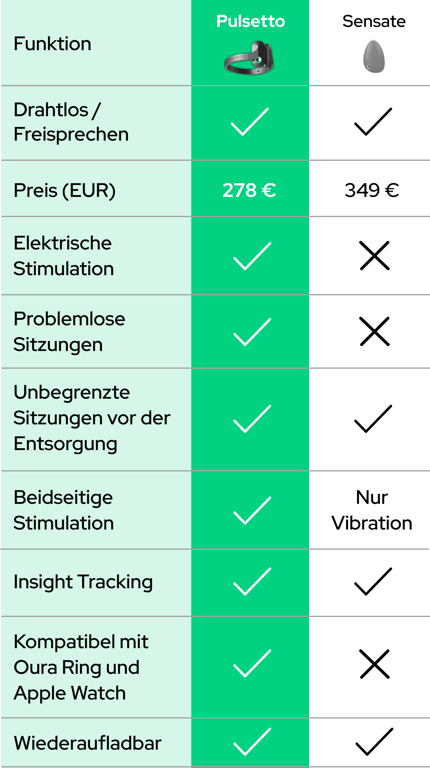 Sieh, wie Pulsetto andere Geräte übertrifft