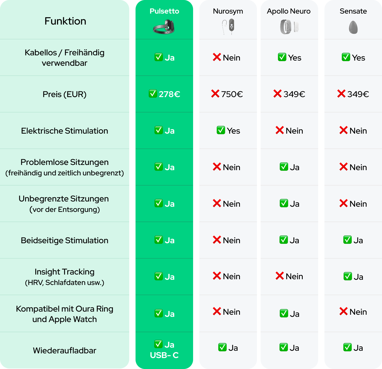 Sieh, wie Pulsetto andere Geräte übertrifft