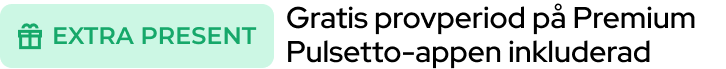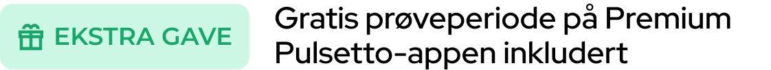 Extra gåva: Pulsetto Premium 30 dagars gratis provperiod. 3 extra stimuleringar, 11 unika guidade meditationer, 54 andningsövningar, 1200 positiva affirmationer och mer.