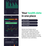 Los usuarios de la app de Pulsetto pueden consultar las estadísticas de uso de sus dispositivos Pulsetto y las tendencias en los registros de salud. Además, los usuarios Premium pueden conectar sus monitores inteligentes de salud y ver sus datos y tendencias de sueño, estrés y corazón.