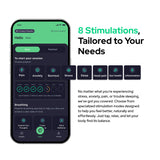 El plan gratuito dispone de 5 estimulaciones esenciales destinadas a tratar el estrés, la ansiedad, el sueño, el agotamiento y el dolor. Los usuarios Premium tienen acceso a 3 estimulaciones adicionales para la inflamación, la salud intestinal y los dolores de cabeza.