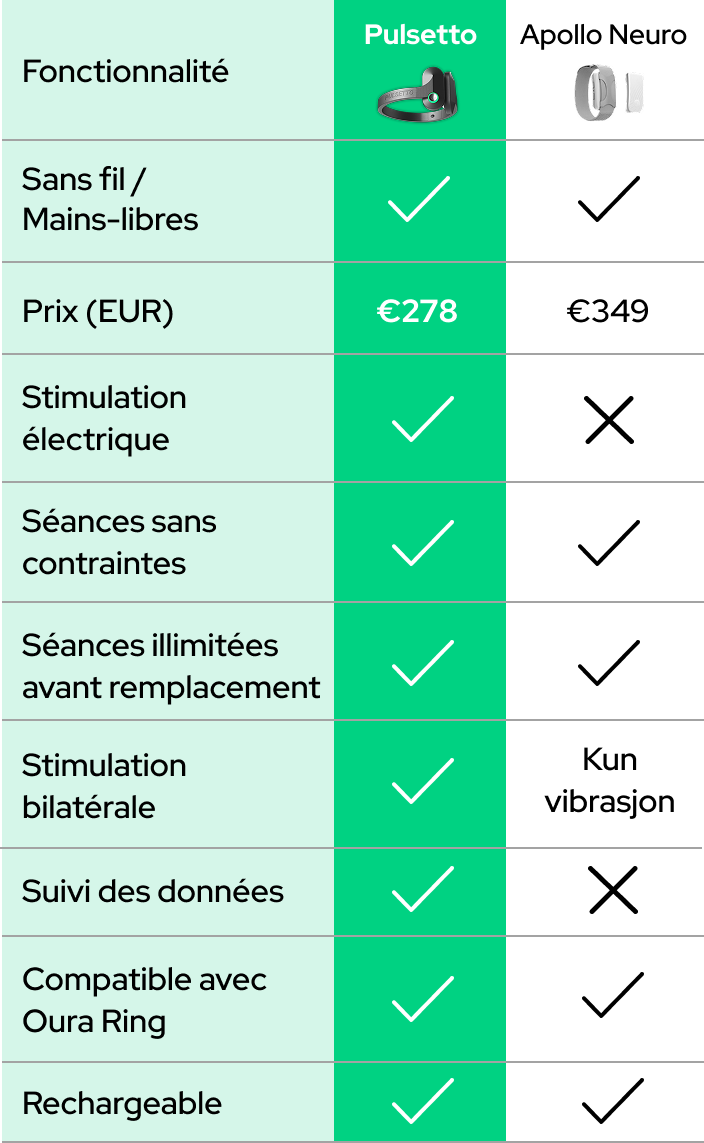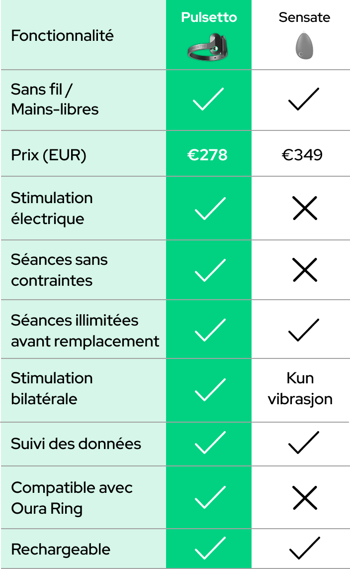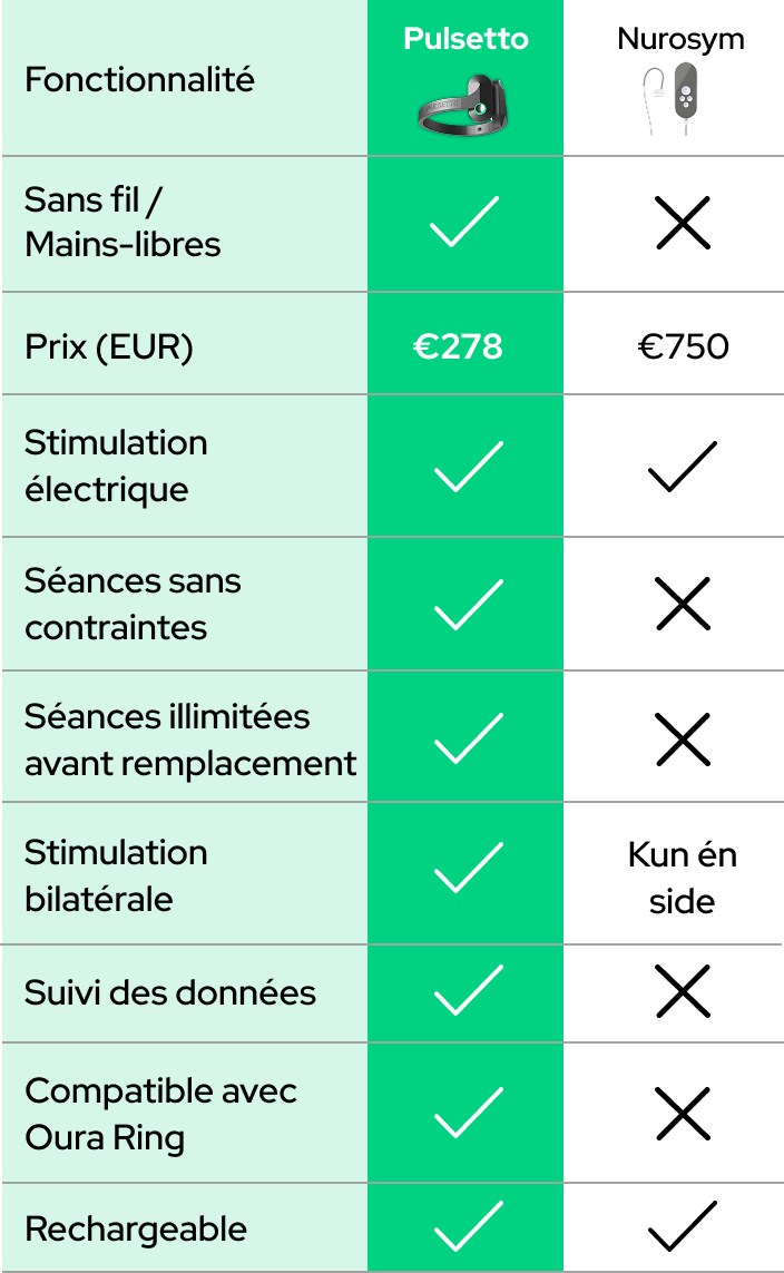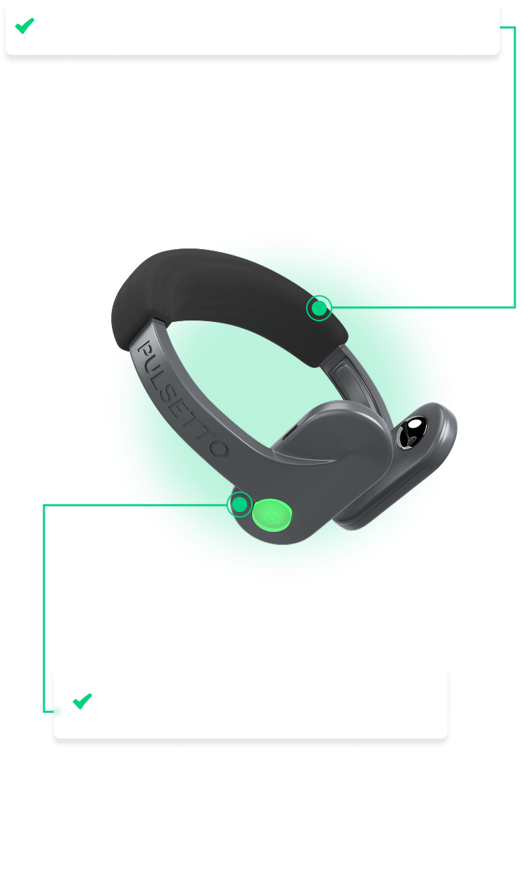 Remarque : Pulsetto n’est pas recommandé aux personnes portant un dispositif médical implantable actif, tel qu’un pacemaker, un implant auditif ou tout autre appareil électronique. Veuillez consulter votre médecin avant utilisation.