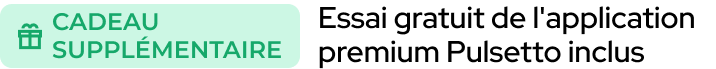 Pour ceux qui souhaitent une expérience encore plus personnalisée, nous proposons des options supplémentaires comme l’abonnement Premium à l’application et d’autres programmes de bien-être. Ces options sont facultatives et vous permettent d’adapter Pulsetto à vos objectifs.