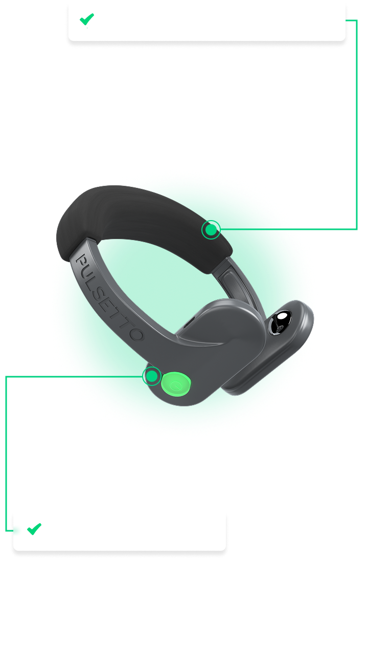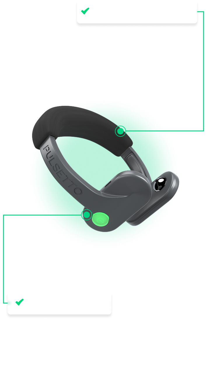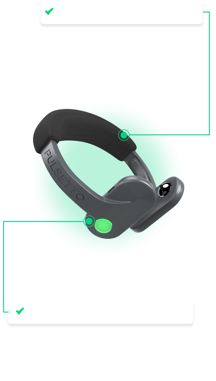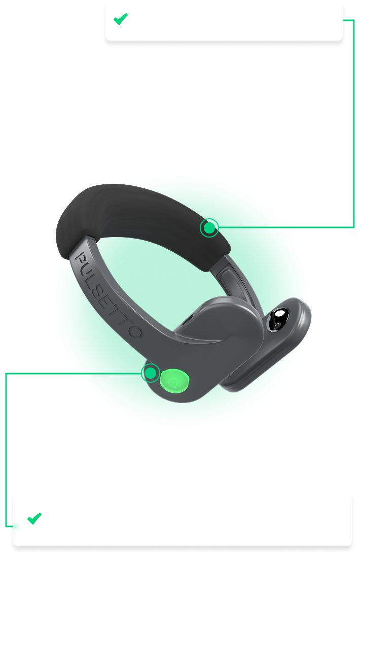 Obs: Pulsetto rekommenderas inte för personer med aktiva implantat, såsom pacemaker, hörapparatimplantat eller andra elektroniska implantat. Om du har en sådan enhet, kontakta din vårdgivare innan du använder Pulsetto för att säkerställa att det är säkert för dig.